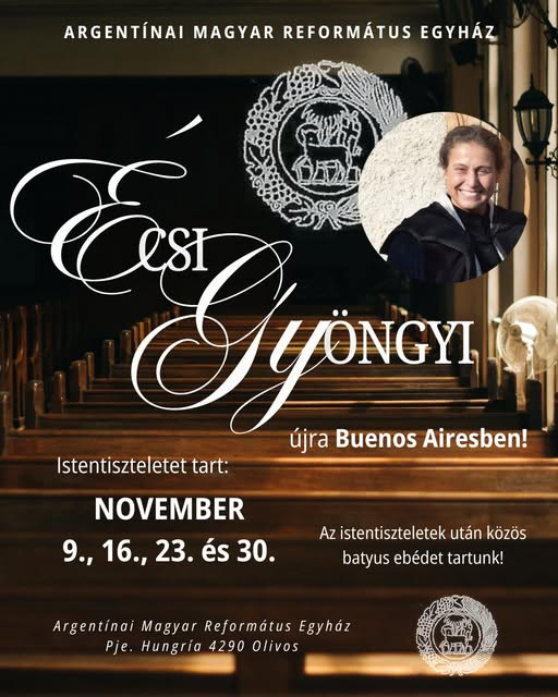 kapcsolat Magyar Református Diaszpóra Központ 4026 Debrecen, Füvészkert u. 4. diasporakozpont@reformatus.hu HomeDiaszpóra központ hírekÉcsi Gyöngyi lelkésznő szolgálatai az Argentínai Magyar Református Egyházban 2025. novemberében Écsi Gyöngyi lelkésznő szolgálatai az Argentínai Magyar Református Egyházban 2025. novemberében A Gyülekezet Facebook híre:https://www.facebook.com/share/p/14PKsUYszQw/