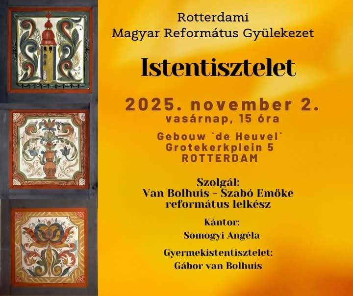 Istentisztelet Rotterdamban 2025. november 2-án 15.00 órától