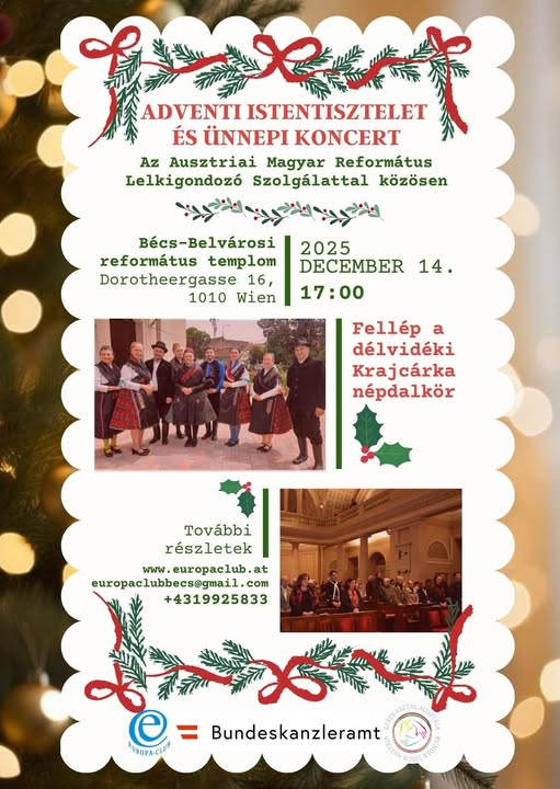 Bécs - Adventi istentisztelet és ünnepi koncert 2025. december 14-én 17.00 órától