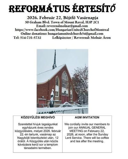 Montreáli Magyar Református Egyház - 2026. Böjtfő vasárnapja
