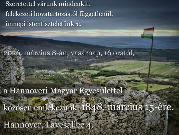 Ünnepi istentisztelet megemlékezéssel Hannoverban 2026. március 8-án 16.00 órától